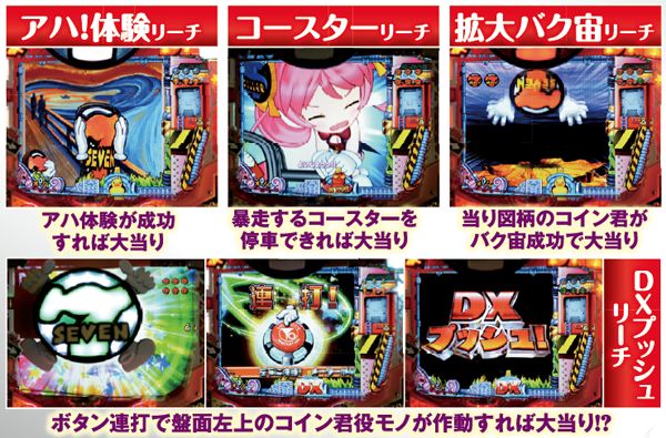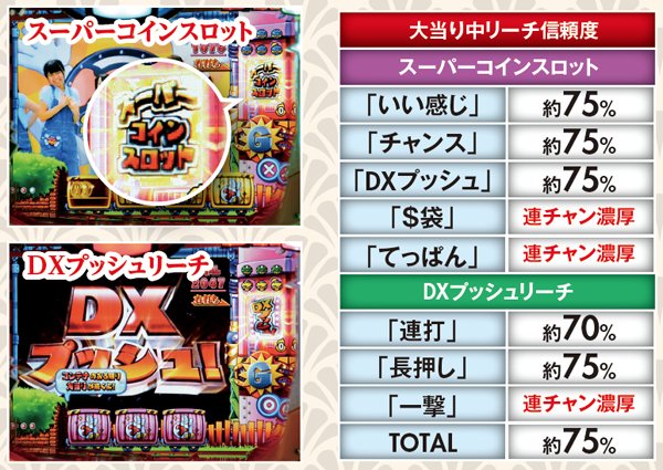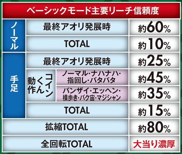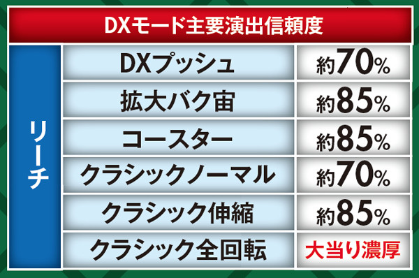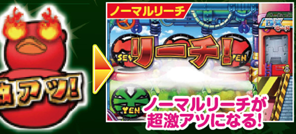 強リーチ発展がメインの赤アヒル保留だが、ノーマルのままだと鉄板となる。また、他に上記3種類のリーチに発展しても大当り濃厚だ。
