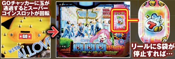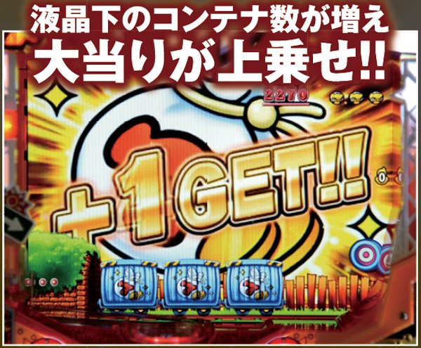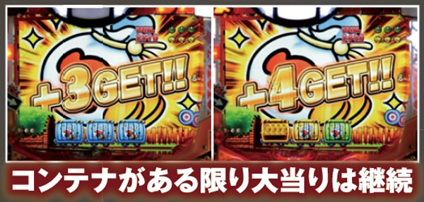 液晶右上のコインスロットのリールに$袋が停止すれば上乗せチャンスが発生。追加されるコンテナの数だけボーナスが継続し、出玉が上乗せできるぞ。