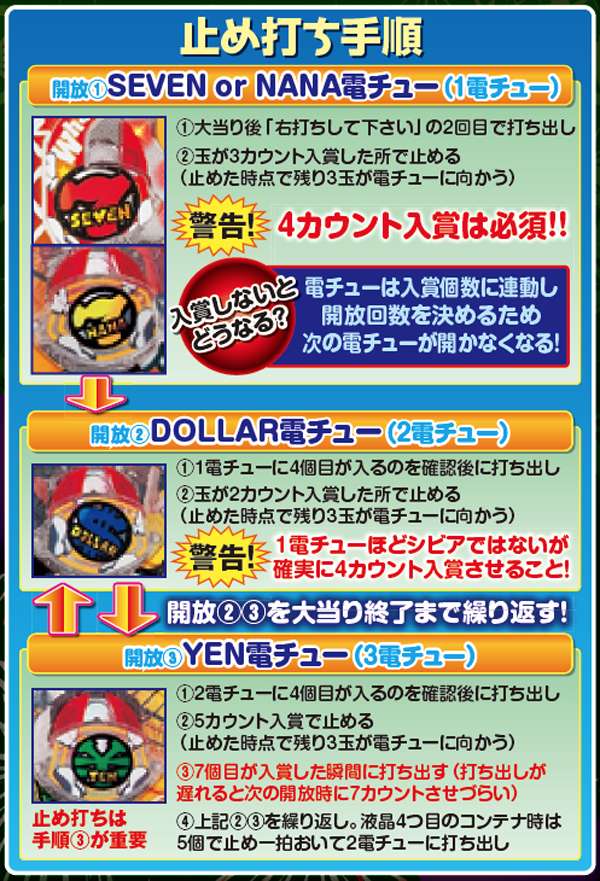 上のような手順で各電チューの開放間に止め打ちをすればムダ玉を減らすことが可能。1及び2電チューには確実に4カウント入賞させる、という点にだけは注意しよう。