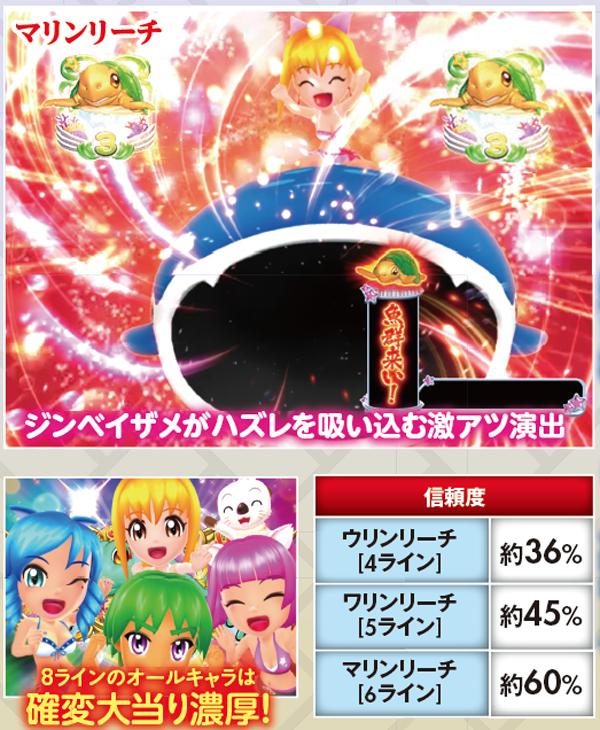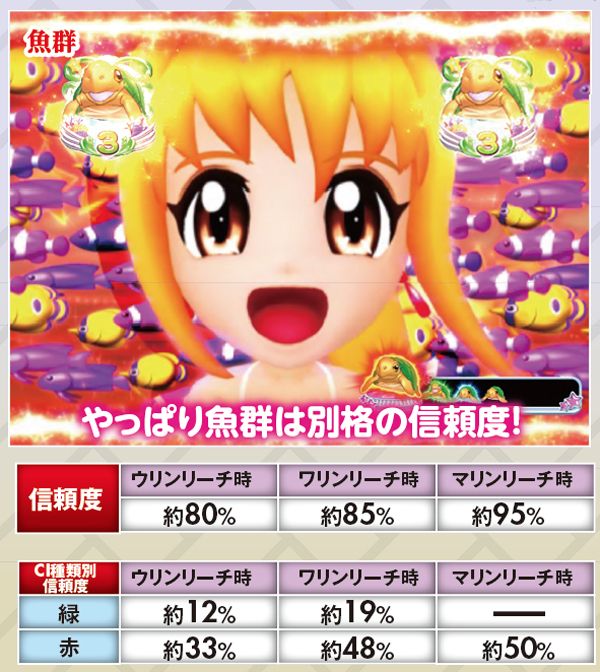 基本的にはGO!GO!マリンBONUS当選から80回転のSTに突入する。通常大当りでも、少なくとも40回転の時短が付くので、引き戻しも十分に期待できる。