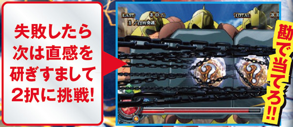 最もビタ押しの頻度が多いのがこのART中で、鎖が付いた左1stナビ発生時に左の箇所をビタ押し! 成功するとメーターが上昇し、上乗せが近付く。