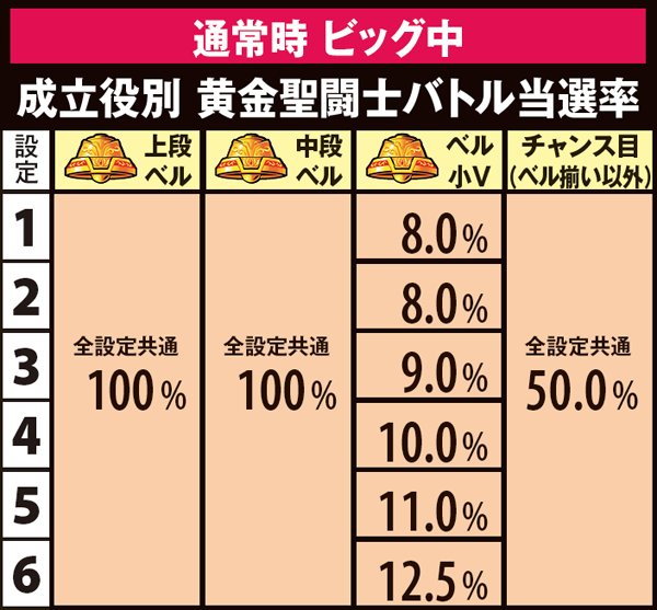 黄金聖闘士バトル当選率・通常時ビッグ中