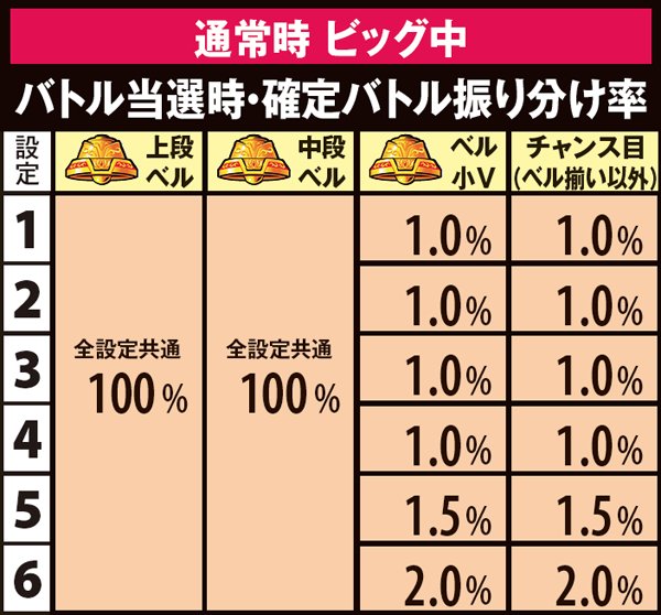 バトル当選時の確定バトル振り分け率・通常時ビッグ中