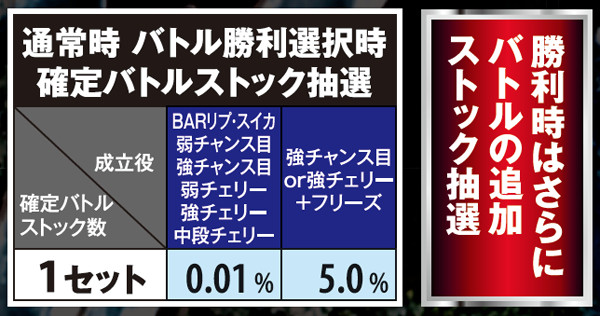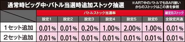 通常時ビッグ中・バトル当選時追加ストック抽選