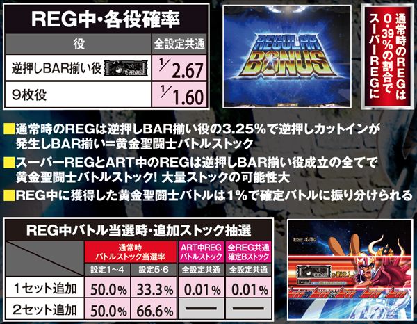 REGは通常時とART中でバトル獲得率が全く異なるが、通常時のREGでカットインに成功した場合は必ずオマケのバトルが付いてくるのが嬉しい。