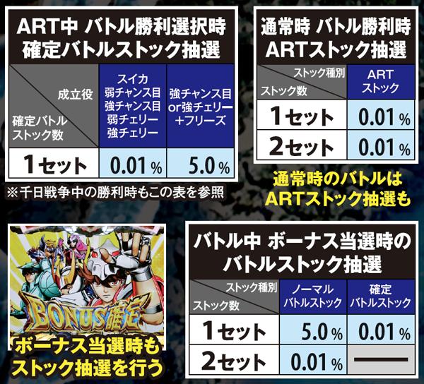 通常時とART中ではボーナス中の役割が若干異なり、通常時のボーナスはART突入のためのバトル獲得抽選が主な役割。ARTも上乗せバトルへの契機である点は同じだが、性能そのものが大きく増している。