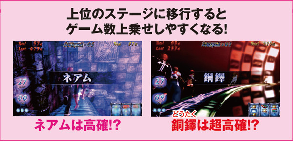 液晶ステージ…グレイブヤード・鏡の城滞在時、ARTorボーナス中は引き継ぐ。それ以外はドンレミ村ステージ