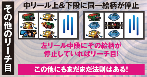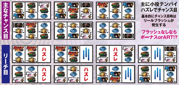 本機は液晶上のチャンス目&リーチ目が多数用意されており、チャンス目もフラッシュなしならばリーチ目に昇格。