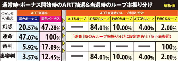 通常時ボーナス開始時・ART抽選&当選時のループ率振り分け
