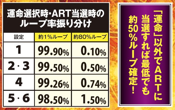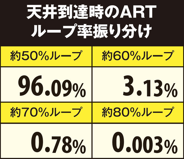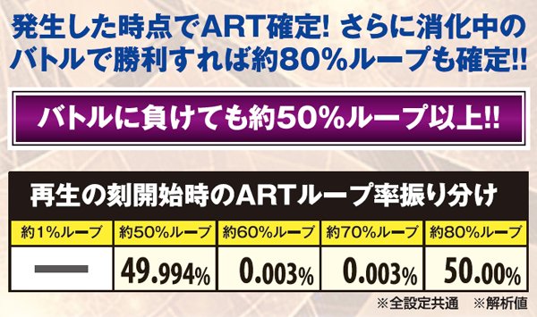 ループ率約50%以上のARTに当選。※ART中に到達した際はループ率約50%以上のARTをストック。