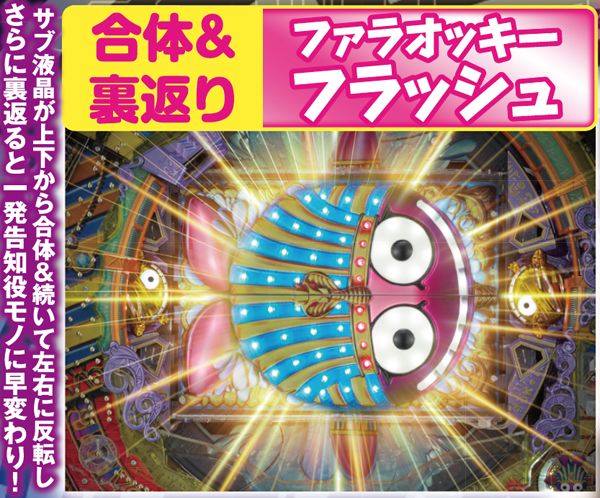 ギンパラシリーズ最新作は横スクロール5ラインと2つのサブ液晶が融合。 上下左右に動いてメイン液晶と連動する他、さらには合体&裏返れば一発告知役モノとしての役割も発揮。 また、確変中などのギンギラ☆ガールズの姿も見逃せない! |