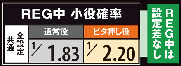 REG中の技術介入は非常にシビア。ビタ押し回数こそ1回で良いが、中リールの赤7を見分ける必要がある上に、失敗すると獲得枚数を減らす可能性もある。リスクを伴うので慎重に実践しよう。