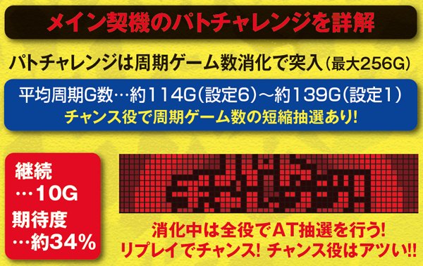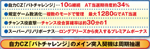 初当り契機のメインである「パトチャレンジ」中は成立役に応じてATの抽選をしている。