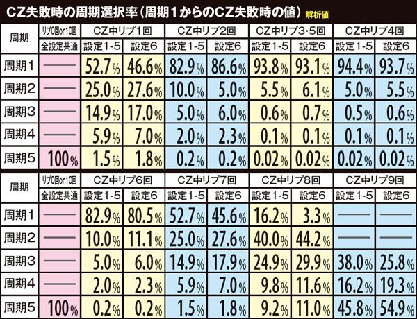※上表の値は周期1からのCZ失敗時の値ですが周期2-5からのCZ失敗時もほぼ同数値の周期選択率となります