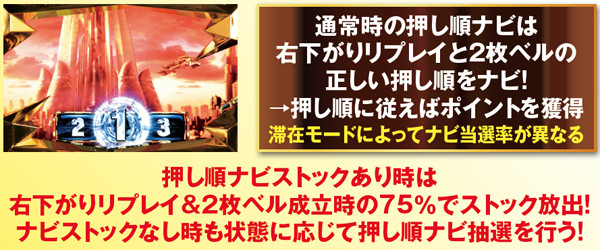 リプレイ&2枚ベル時に必ず押し順ナビが発生する。