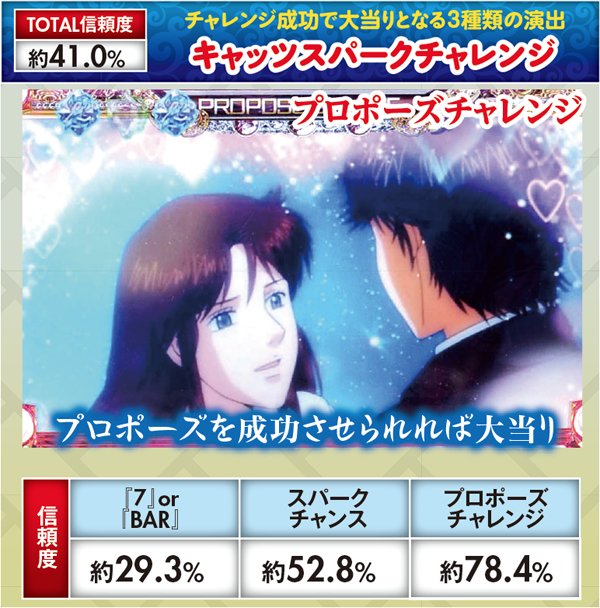 演出によって信頼度が大きく変化する。プロポーズチャレンジなら信頼度約78%だ。