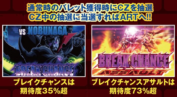 CZ抽選は通常時のバレット獲得時に行われ、当選すればハイウェイステージなどの前兆を経て発動。基本はブレイクチャンスだが、ブレイクチャンスアサルトならば一気にART当選の期待が高まる。