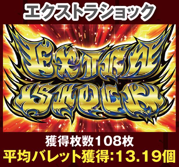 プレミアム的位置づけにあるエクストラショックはバレットを大量に獲得できるチャンス。青7揃いはリプレイとなっているため揃えば揃うほどお得となる。1回でも多く引きたい。