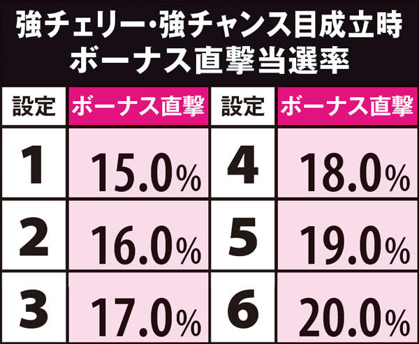 ボーナス直撃当選率・強チェリー&強チャンス目成立時