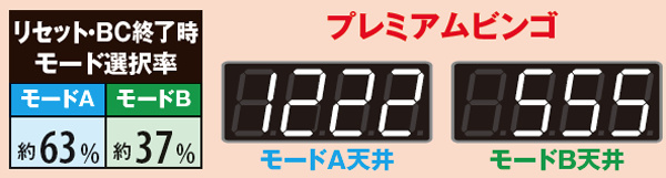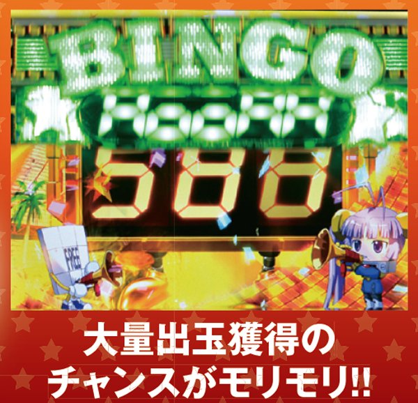 | 機種概要 | ベルコから登場する『プレミアムビンゴ』は前作スーパービンゴネオと比べると「Hooah!」はなんと2倍までアップ。ATの初当りさえ引ければ3桁&4桁ゲーム数ゲットの可能性が高まっているので、ネオの出玉性能をより鋭く尖らせたマシンであると言える。 |