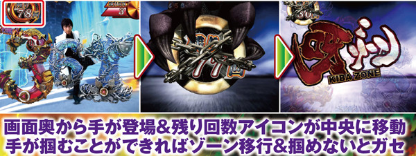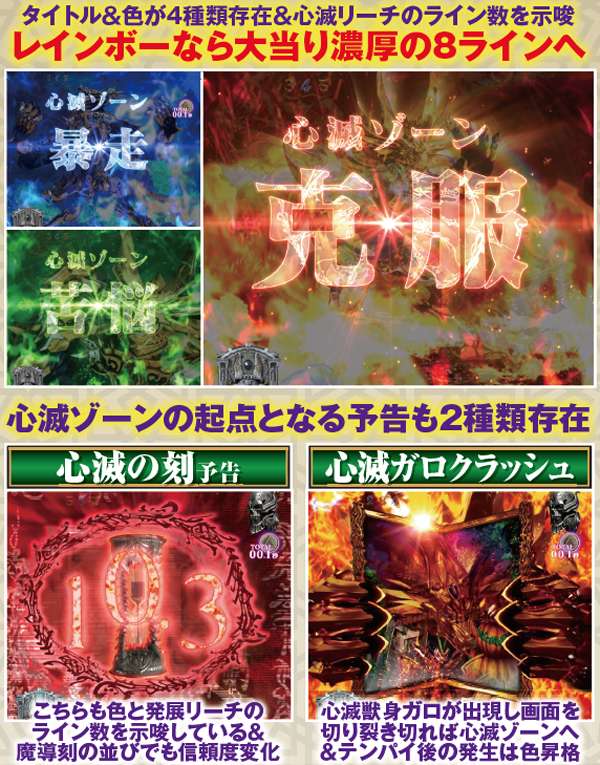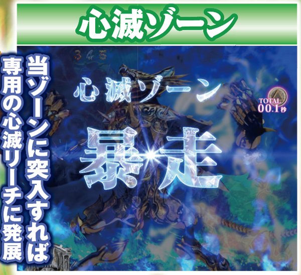 「心滅リーチ」への呼び水となるゾーンで、このゾーン内でのチャンスアップがある程度リーチ移行後の信頼度(ライン数)とリンクする。上記の2演出ではゾーンの色昇格などチャンスアップの役割もある。