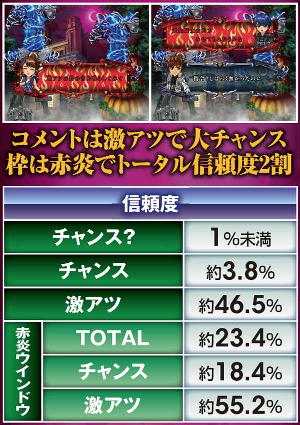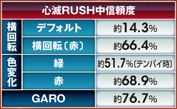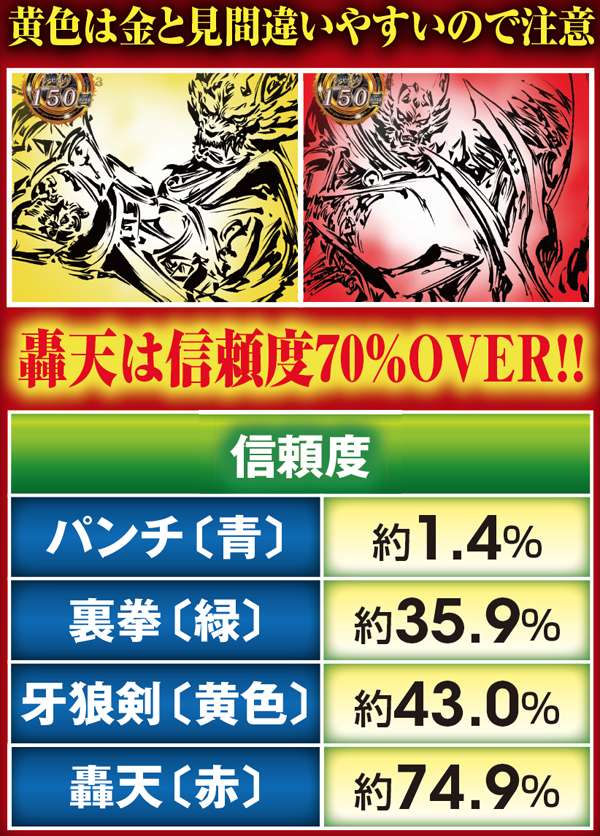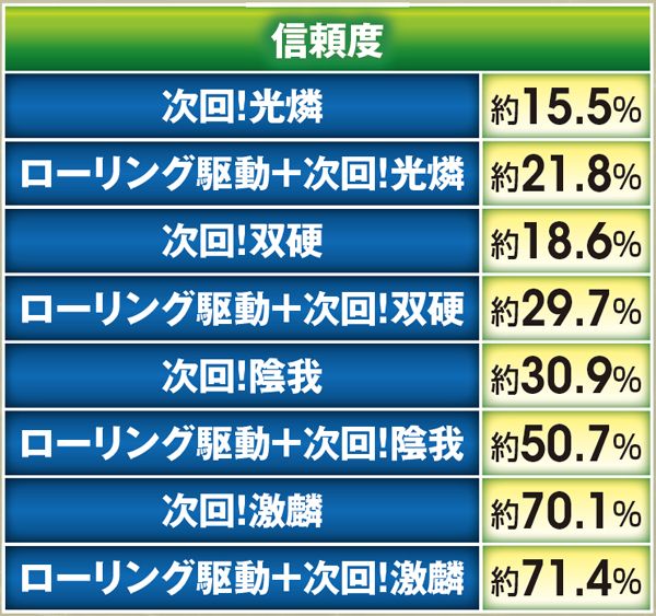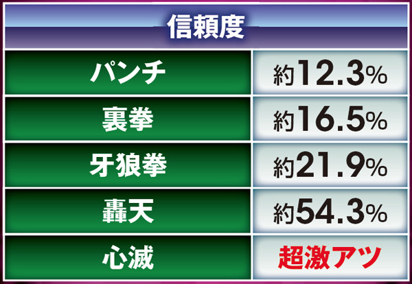 烈火炎装と轟天の間には2倍以上の信頼度差が設けられている。ただ、轟天に変化したからといって油断は禁物。
