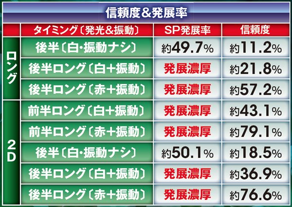 通常時・ロング&2Dのボタン振動別信頼度&発展率