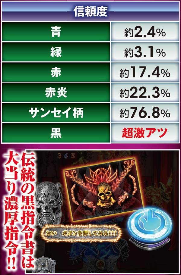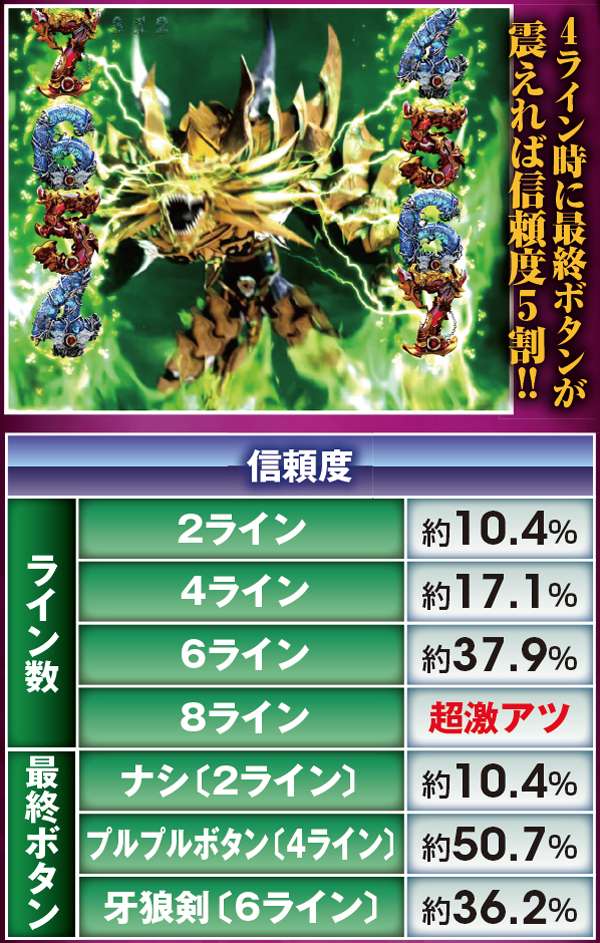 ・99.9秒リーチのTOTAL信頼度は対応する牙狼SPに準ずる