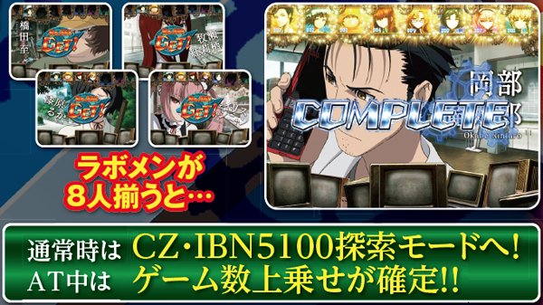 1ゲーム毎にカーソルが移動しており、カーソルがシルエットに止まっている時にリプレイを引くとラボメンをゲット。ラボメンが8人揃うと、通常時ならCZ「IBN5100探索モード」へ突入し、AT中ならゲーム数上乗せ確定となる。