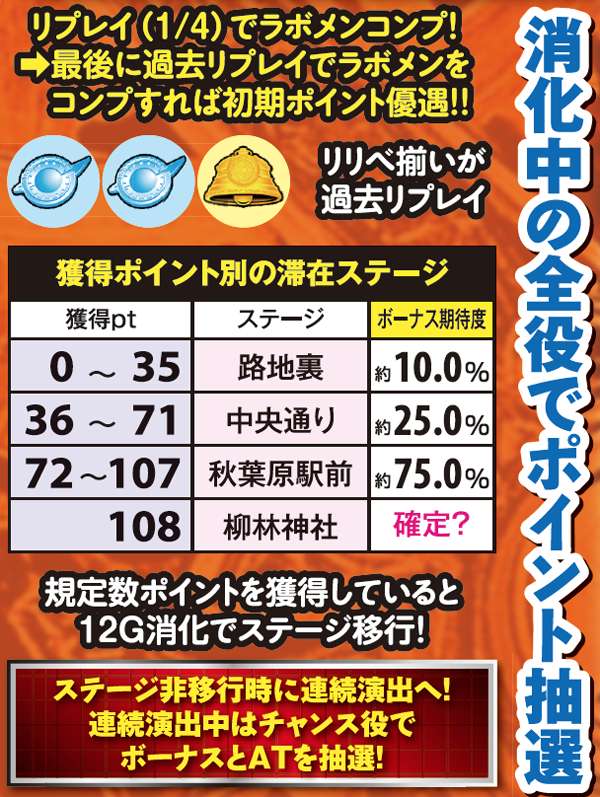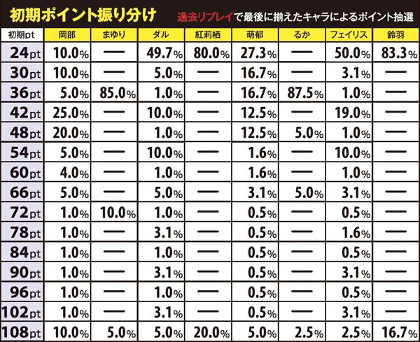 通常リプレイでラボメンコンプした際は最大でも42ptスタートとなるが、過去リプレイでラボメンコンプすれば最大で108ptスタート。ラボメンコンプ時のキャラと獲得ポイントを示唆する滞在ステージにも注目したい。