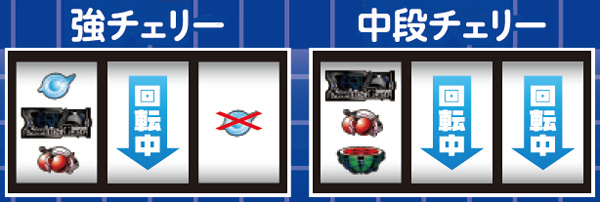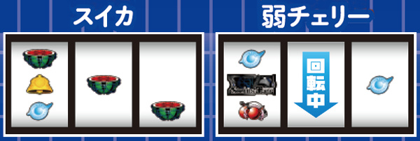 左リールは黒BARを目安にチェリーを狙い、右リールをフリー打ちし、スイカがテンパイすれば中リールに赤7を目安にスイカを狙おう。