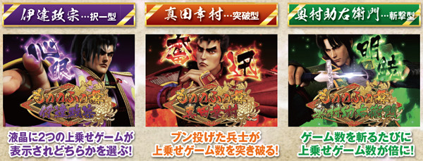 本機の目玉機能の一つがこれで、一撃で最大8つのもののふの舞をストック可能。PUSHボタンを押して武将が慶次に変わると期待度急上昇だ。