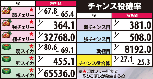 ※強チェリーと強スイカは強系チャンス役、それ以外のチャンス役は弱系チャンス役