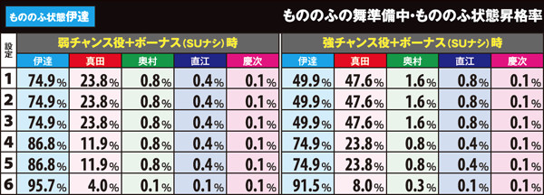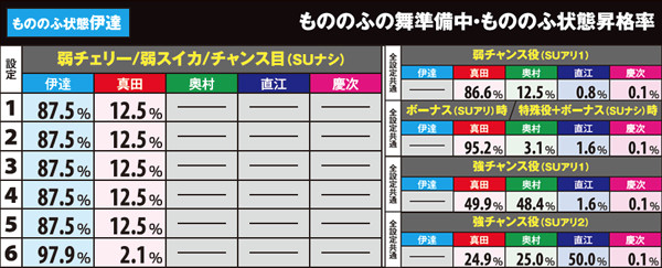 もののふの舞準備中・もののふ状態昇格率(伊達)