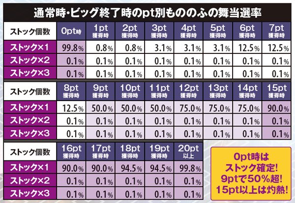 通常時に引いたビッグ中は成立役に応じてpt獲得抽選を行っており、チャンスベルならpt獲得が確定。9pt獲得するとART期待度が50%以上に跳ね上がり、15ptなら90%以上と灼熱だ。