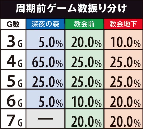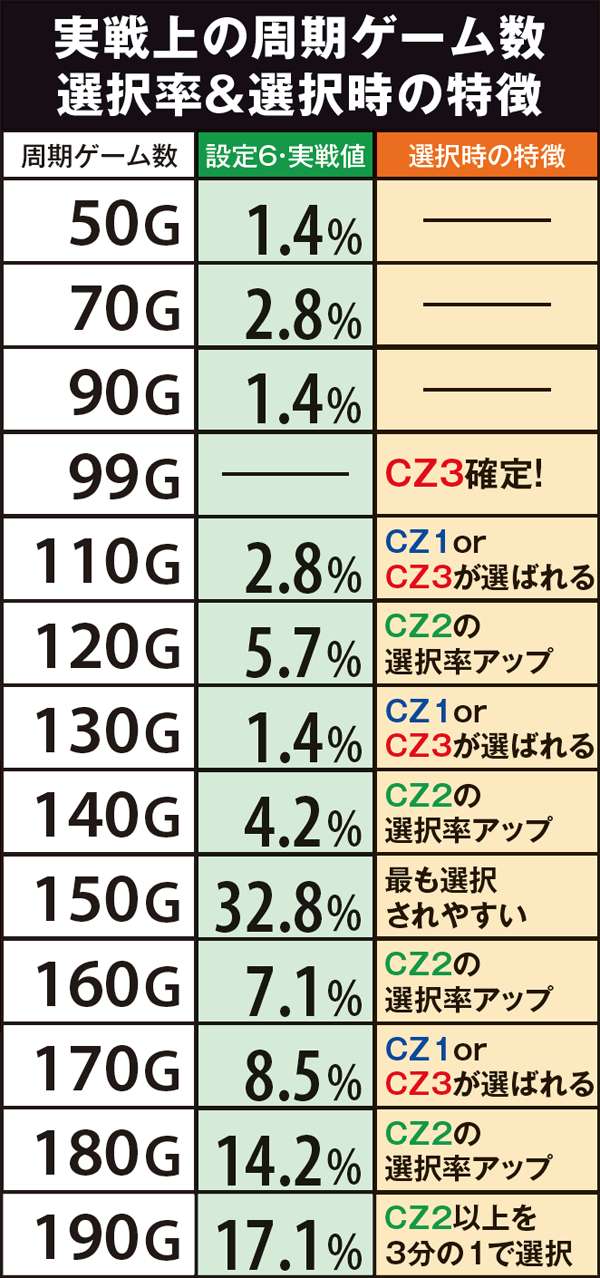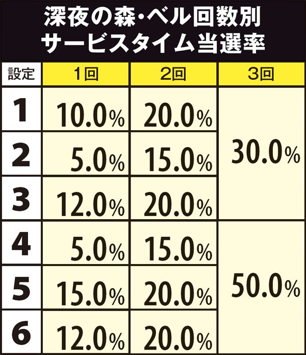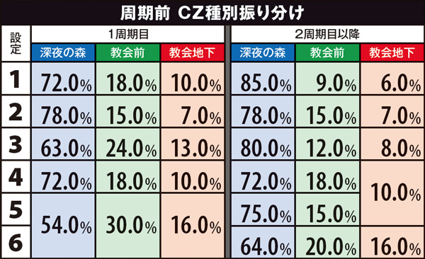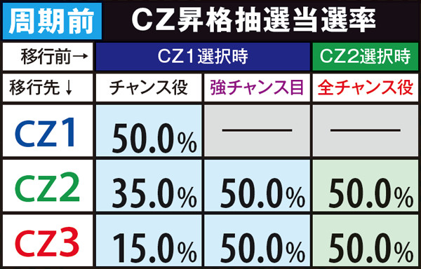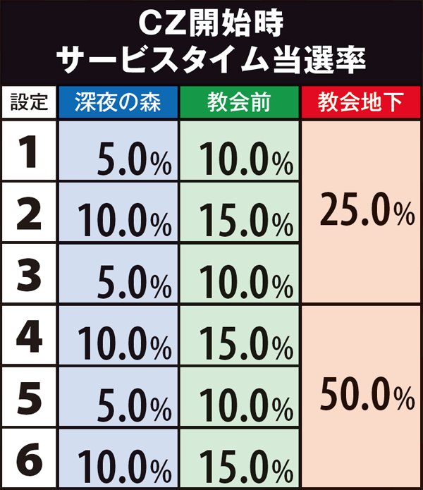 チャンスゾーンは内部的に3種類あり、サービスタイムの当選率が異なる。上の表はチャンスゾーン開始時の当選率だ。