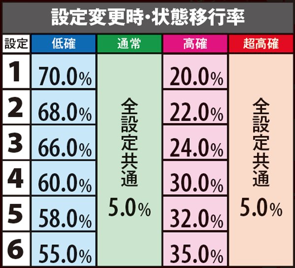状態移行率・設定変更時&ボーナス終了後