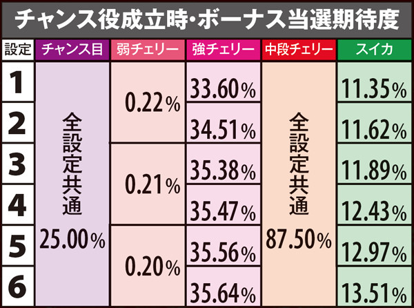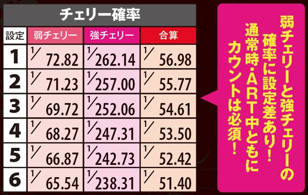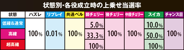 ※弱チェリー・強チェリー確率はボーナス重複分も含む