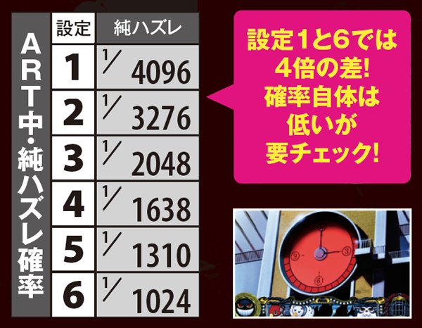 CZ中のART突入率にも設定差あり。とはいえ、リプレイ時の5~7%と確率が低い上に僅差のため、参考程度に捉えておけば問題ない。何度も確認できるようであれば、高設定に期待しよう。