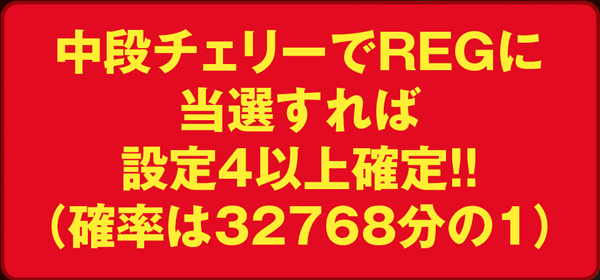 通常時は全てのチャンス役でART抽選を行っているが、主軸となるのは強チェリー。低確状態でも20~36%の割合でARTに当選する。なお、高確であれば66%以上で、超高確であれば必ずARTに突入するため、低確と思しき状況での強チェリーに注目したい。