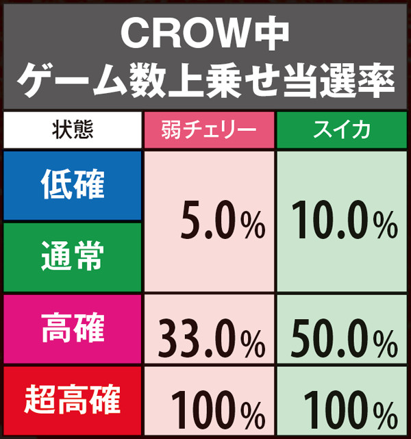 CROW・ゲーム数上乗せ当選率