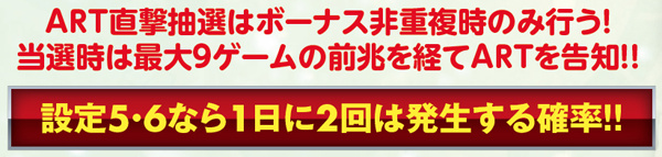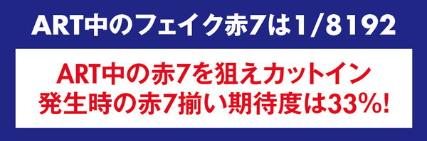 ボーナス中はほとんどのケースでハズレが1回出現するが、実のところこれはJACであり、ハズすことでボーナス終了後、即RT状態からスタートできる(ボーナス後に準備状態がないのはこのため)。JAC及びチャンス役成立時は例外なく画面が赤くフラッシュするので、その際は左リールに赤7を狙ってJAC入賞を避けつつチャンス役をフォローしよう。