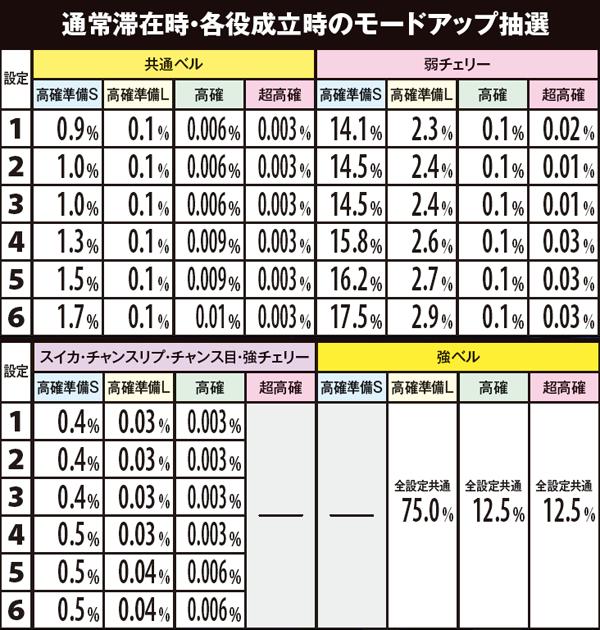 エピソード中は上乗せ期待度がアップし、チャンスリプやチャンス目でも4回に1回の割合で当選。弱系チャンス役でもそれなりの割合で上乗せに繋がる。