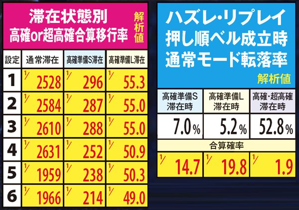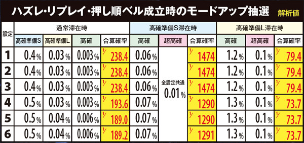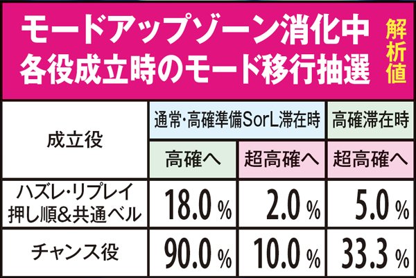・保証ゲーム数消化後はハズレ・リプ・押し順ベル時に通常モードへの転落抽選が行われる