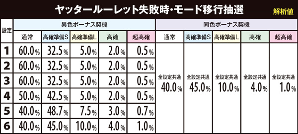 1…ボーナスorART終了後700G以上ハマリ。2…ヤッタールーレットを9回連続ハズシ時。