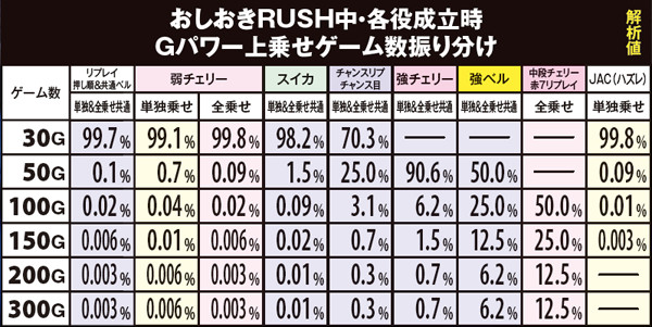 おしおきRUSH・Gパワー上乗せゲーム数振り分け