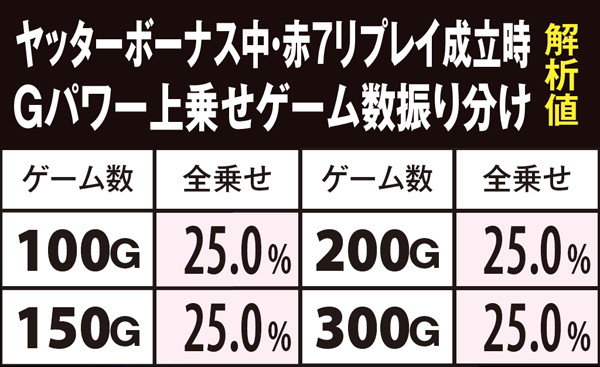ヤッターボーナス・Gパワー上乗せゲーム数振り分け