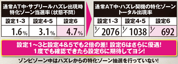 特化ゾーン当選率・サブリールハズレ出現時