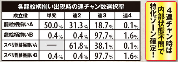 各龍絵柄揃い・出現時の連チャン数選択率