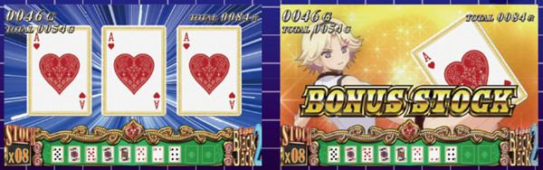 トランプ昇格抽選中・ボーナス中・ストックタイム中は、獲得した1G連カードが液晶画面の下部に表示される。領域は最大10個だが、左側に残りストック数も出る親切設計になっている。ジョーカーがいたら歓喜しよう。